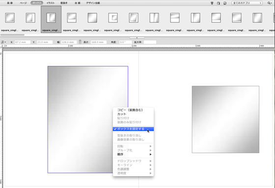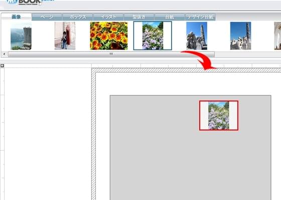 ボックス機能は、写真の位置・大きさが予め設定してあり、配置したボックスに写真をドラッグ(掴んで移動)するだけでフォトブックのレイアウトができる機能です。