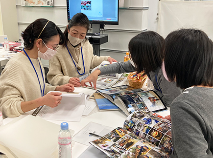 マイブックスタッフがパソコンの操作をお伝えするとサクサクと進められ、「もっと写真を追加したい!」「背景を変えてみよう」などお好みをアレンジを加えて完成!後日出来上がったマイブックを持ち寄ってお披露目会も開催しました。「思ったよりしっかりしてて、すごい宝ものになった!」「祖父母にもプレゼントしたい」など喜びの声をお聞き出来ました♪